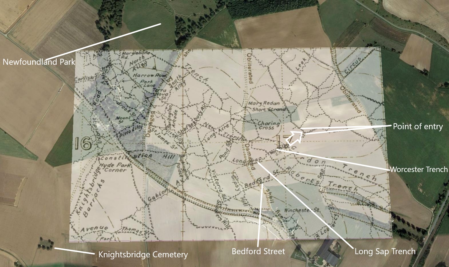 The diary also has the order and plan of the raid, using trench maps it is possible to locate the exact area.