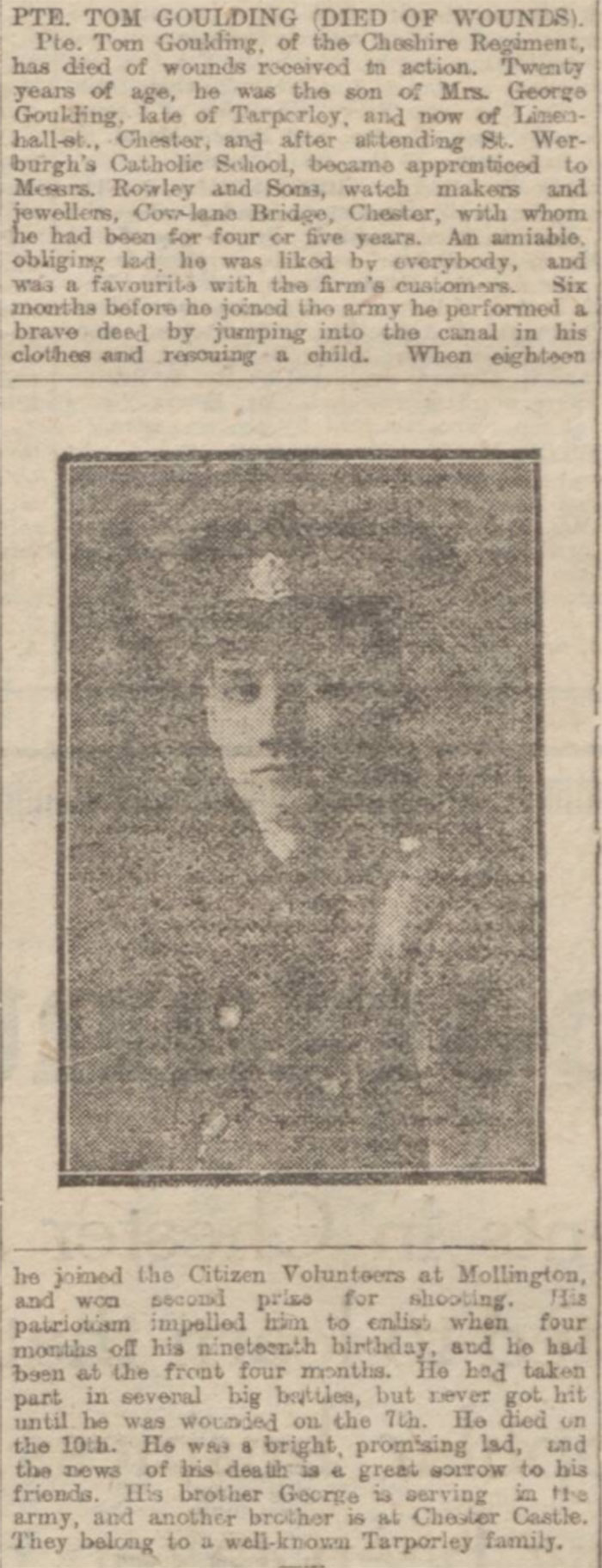 | Regiment: | 1/5th Bn Cheshire Regiment |