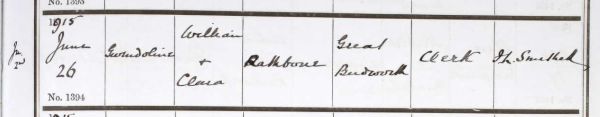 He left a widow Clara and a daughter Gwendoline, whose address then was 45 Church Street, Great Budworth (at Clara's parents' home).