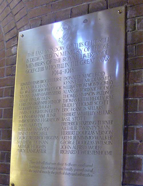 Dudley Holme Scott's name is listed on the Royal Liverpool Golf Club Memorial