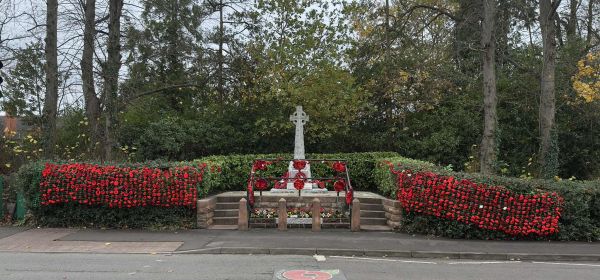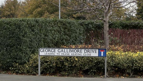 George is remembered on the war memorial in Haslington (his name looks like "Pioneer C. C. Gallimore"), and his full name appears on a road in the nearby village of Winterley.
