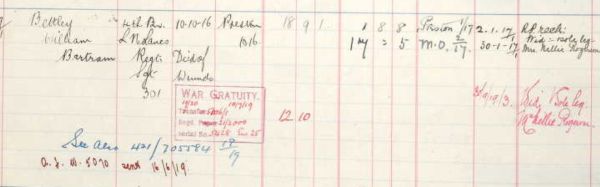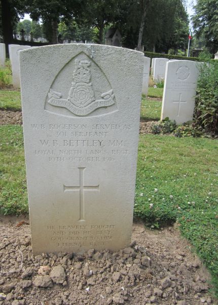 William Bertram Rogerson, aka Bettley, died of wounds on 10th October 1916. He was 25 years old, and left a widow, Nellie.