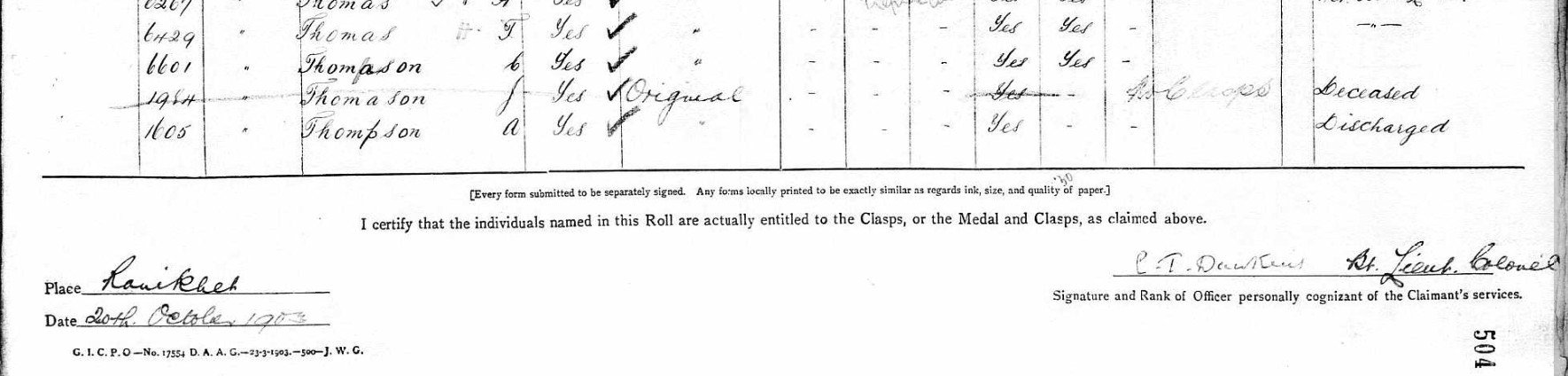 1984 Private John Thomason, 2nd Shropshire Light Infantry, died of disease (dysentery) in Pretoria Hospital, on February 6, 1901, aged 33. He is buried in Pretoria Cemetery, Church Street, South Africa (Grave 572).