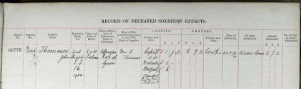 His Deceased Soldiers' Effects entry (below) shows his place of birth, enlistment date and that he was married to Anne. The census of 31st March 1901 lists widowed Annie living with her four children at 39 South Street, Crewe, not far from her retired parents-in-law George and Harriett, whose address was 3 Davenport Street, Crewe.
