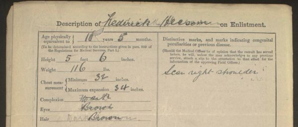 He was born in the autumn of 1877, the second son of Joseph and Catherine (nee Hankey), and brother to George, Sarah, Elizabeth, Ada and Catherine Heesom. In 1881, the family home was at 1 Leicesters Court, Witton, near Northwich, and by April 1891, they had moved to 43 Whalley Road, Witton, the address where his father died in 1927. His brother George died in infancy, so Frederick was the only surviving son. His mother died in 1893, when Frederick was fifteen.