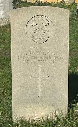 John Francis Dwyer was born in 1888 in Birkenhead to parents Francis and Martha. He had one brother and four sisters. By 1901 the family were living at 29 Connaught Street, Birkenhead.In 1905, at the young age of 17, John joined the Militia with the 3rd Battalion Cheshire Regiment. A year later he enlisted in the regular army with the 2nd Battalion, Royal Welsh Fusiliers