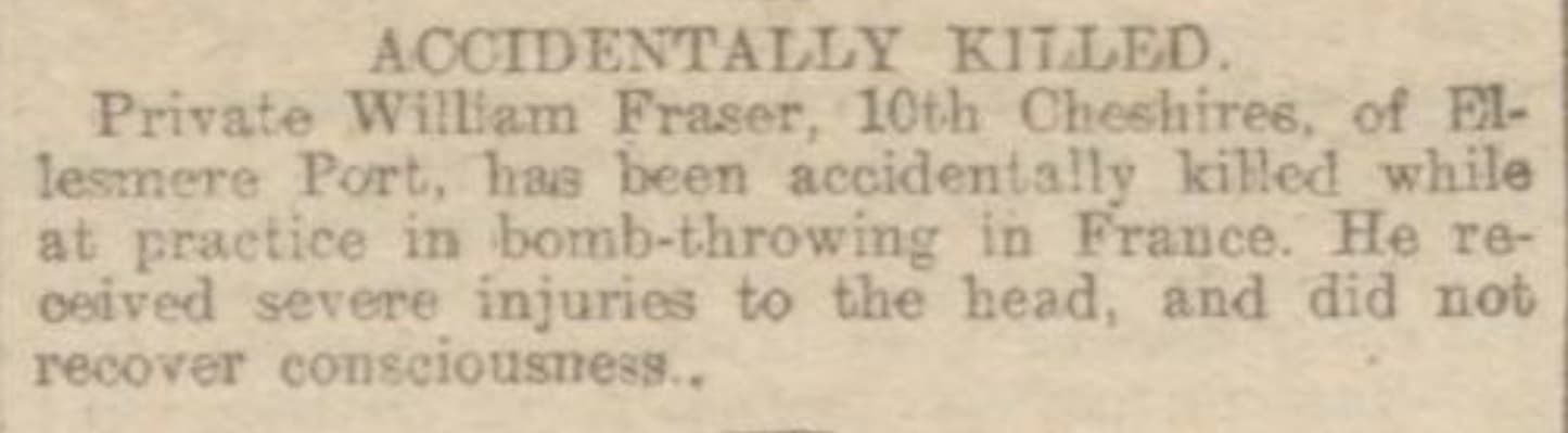 William was wounded accidental while practising Grenade Drills (Bomb Throwing)