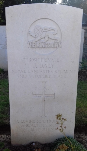 John Joseph Daly, buried in Awoingt British Cemetery, Plot I Grave B 27.