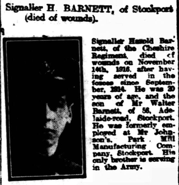 Alderley & Wilmslow Advertiser 1 December 1916.